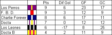 Fecha 5: llegan a la última fecha con posibilidades de ser campeones 5 de los 6 equipos (Charlie Forever con 7 puntos, Los leones, Los Perros, FBD y Docta con 6), pero el calor terminó decidiendo que un partido no se disputara, Docta B y FBD definieron por penales el ganador de su encuentro, y Los Leones entraron a la cancha sólo para cumplir ante Los Perros, ya que el físico también estaba destruido, y con un partido muy poco atractivo se terminó dando una goleada que definió el torneo. El partido entre Docta y Charlie Forever sí se jugó normalmente, y con gran carga de emotividad, en el último minuto Docta perdió las chances de entrar en el podio.